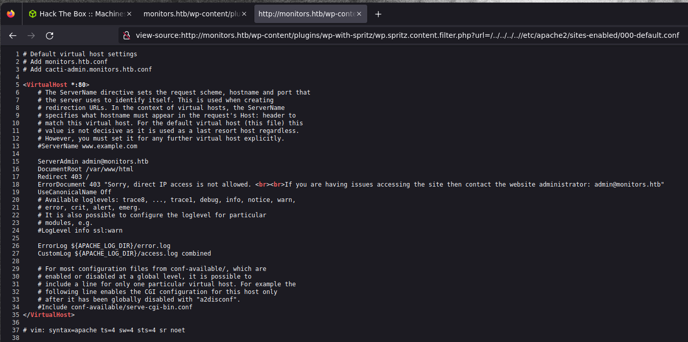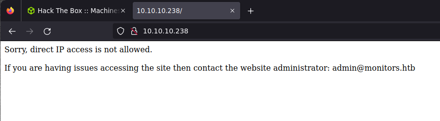 "monitors.htb"este mismo deberemos añadirlo al fichero/etc/hostspara que al ponerlo nos resuelva hacia la maquina y ver si se aplica virtual hosting