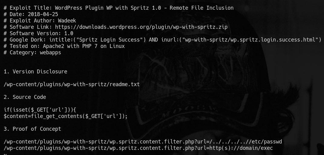 Con esto en mano buscamos el unico plugin en searchsploit por si hubiese alguna vulnerabilidad asociada y encontramos un