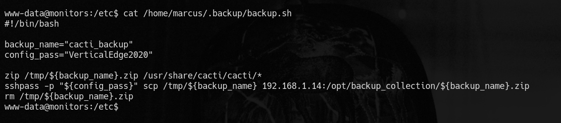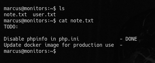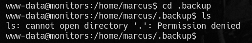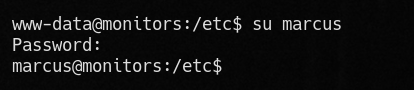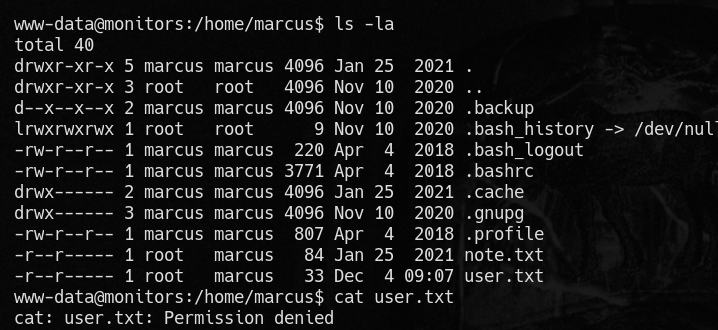 www-datavemos que hay otro usuario marcus al cual nos interesa pivotar para poder ver su flag, listamos su home y vemos algo raro