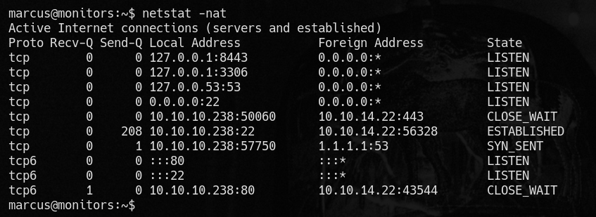 ssh marcus@10.10.10.238 -L 8443:127.0.0.1:8443