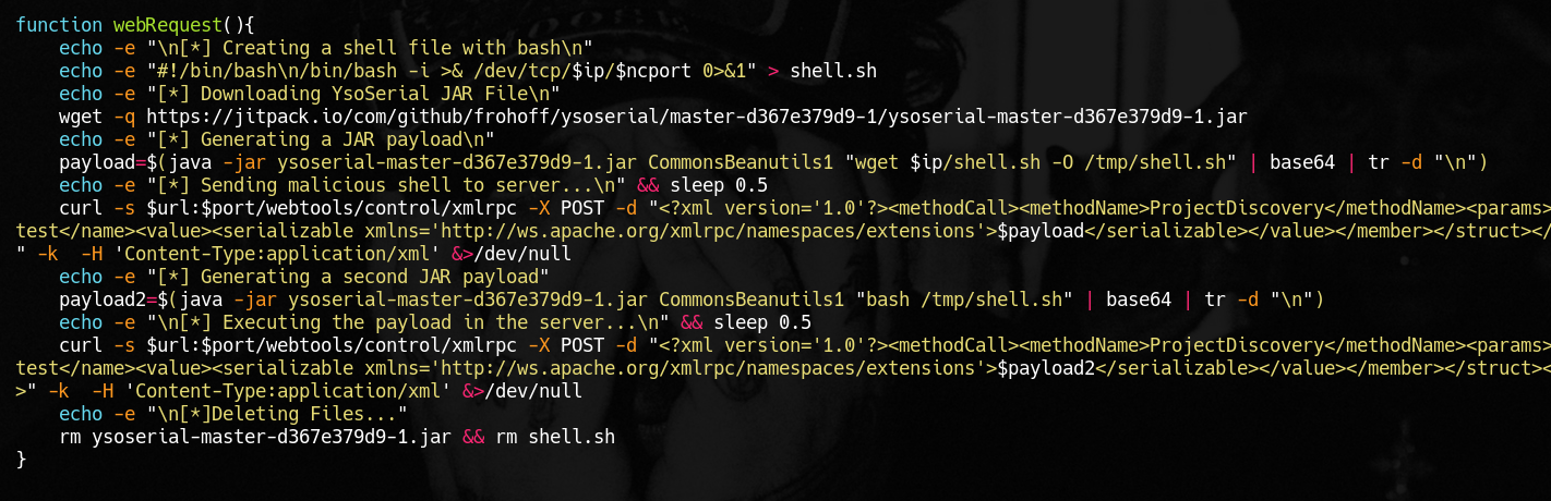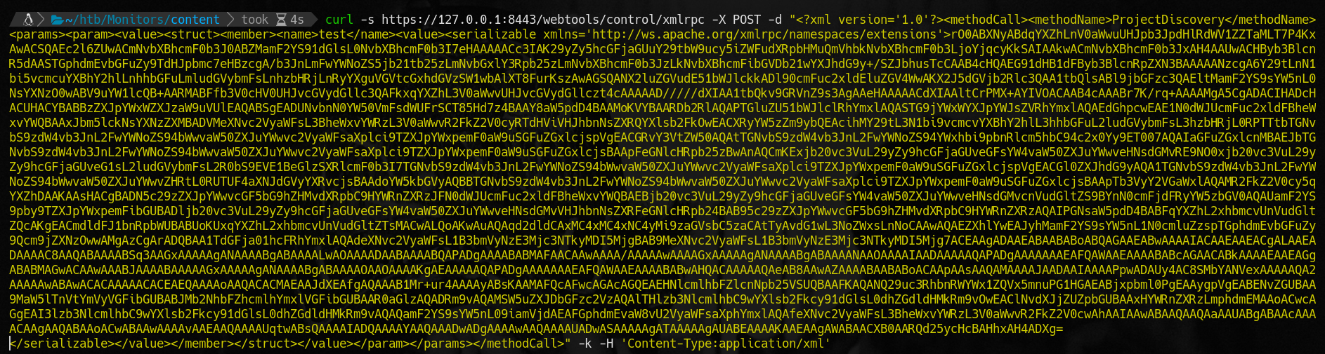 Hacemos una petición curl como se especifica en el script junto al payload jar que hemos creado