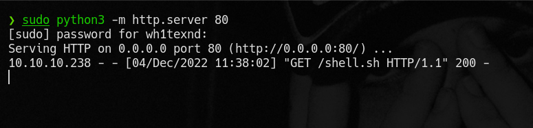 Y vemos que efectivamente se ha ejecutado ya que hemos recibido una petición GET al archivo shell.sh