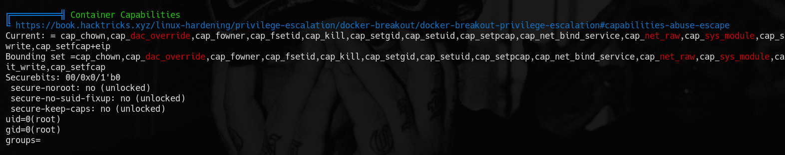 Nos descargamos LinPeas, el cual es una utilidad de reconocimineto del sistema que podemos encontrar en github y nos la compartimos con un servidor web python como en el anterior ejemplo para descargarnoslo en la maquina victima, despues le damos permisos de ejecución y lo ejecutamos. Atendiendo al resultado vemos que está asignada la capabilitie