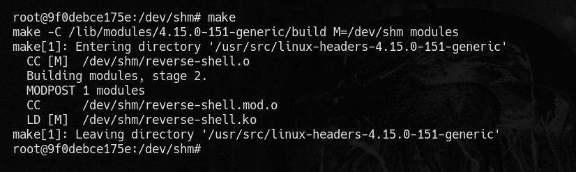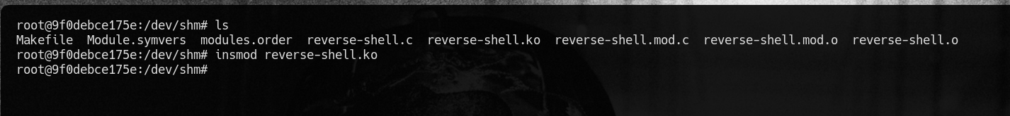 Y cargamos en el kernel el fichero reverse-shell.ko que nos generó
